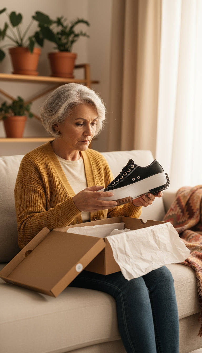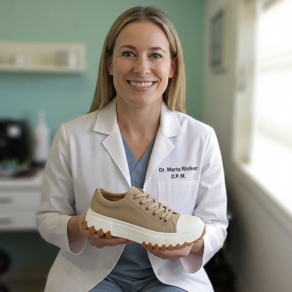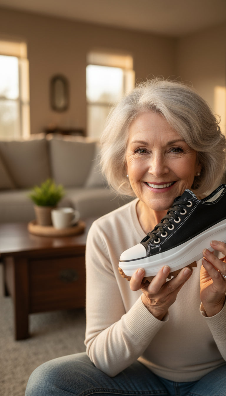 Designed with a roomy toe box and flexible fit to ease bunions, swelling, and wide feet — so every step feels natural.
